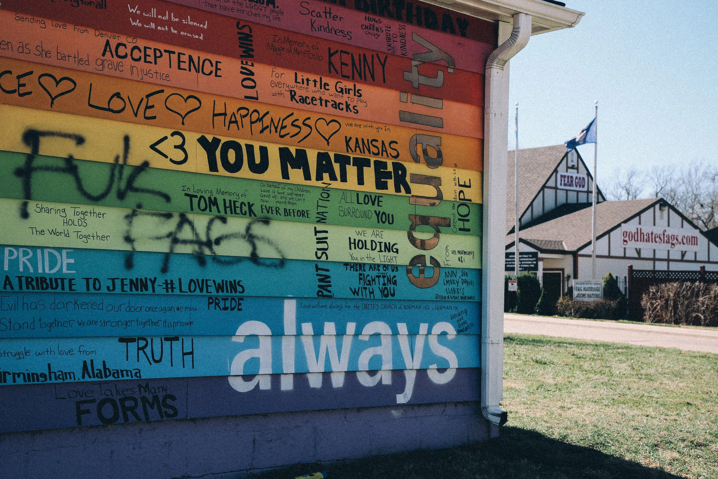 Today was filled with an interesting vibe to say the least. We woke up and dragged ourselves into Starbucks to wake our brains up. We ended up staying there for a bit deciding to use this day to do some planning that in hindsight probably should have been done prior to departure. On our way out of Topeka and into Wichita we payed the Wesboro Baptist Church a visit - the exteriors of it at least, which was frightening enough. The church is situated directly across the street from the Equality House. A rainbow- LGBT pride house plastered with positive, encouraging statements about the LGBT community. The two drastically opposite places bring a whole new meaning to 'bad neighbor.' As we approached the equality house people honked as they drove by, and we saw that across the beautiful and comforting artwork someone had spray painted "Fuck Fags." We were reminded then that we truly were not 'In Colorado anymore' especially when we looked past the rainbow panels and onto the Westboro Baptist Church signs, some of which for example reading: 'God hates Fags' 'Thank God for dead soldiers' 'God Hates America' 'The Jews killed Jesus' ... you get the idea.